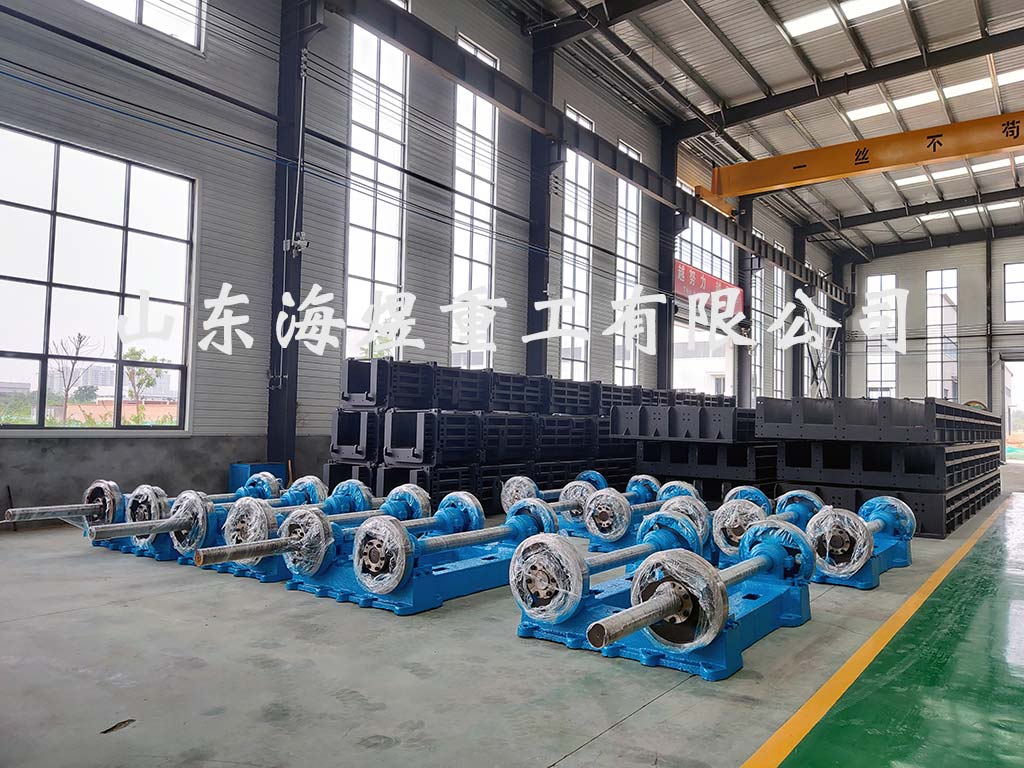 光伏樁離心機是離心成型預(yù)應(yīng)力光伏樁、混凝土管樁、方樁的核心設(shè)備,由托輪、軸、軸承座、軸承、緊定套、聯(lián)軸器、底座、主傳動皮帶輪、電機和控制部分組成,轉(zhuǎn)速一般為五階段,低速,中低速,中速,中高速和高速,通過這五個階段的轉(zhuǎn)速,將模具內(nèi)混凝土中多余的水和空氣排出,從而成型PHC管樁或方樁。