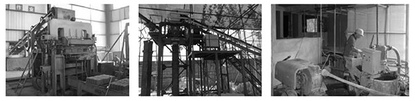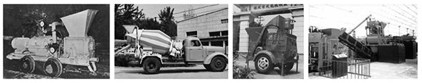 研發(fā)成功的國內(nèi)第一臺汽車式混凝土攪拌運(yùn)輸車(見圖5),為商品混凝土的應(yīng)用創(chuàng)造了先決條件;研發(fā)成功臥軸強(qiáng)制式混凝土攪拌機(jī)(見圖6),結(jié)束了我國只能生產(chǎn)自落式混凝土攪拌機(jī)的歷史,奠定了現(xiàn)代化攪拌站、攪拌樓的發(fā)展基礎(chǔ)。 ![]() 圖4 鼓輪式混凝土噴射機(jī) | 圖5 混凝土攪拌運(yùn)輸車 | 圖6 JD200型單臥軸混凝土攪拌機(jī) | 圖7 砌塊自動(dòng)化生產(chǎn)設(shè)備