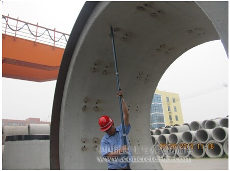 ◆首先,要保證鋼板環(huán)制作尺寸準確,環(huán)內徑與管子的內徑尺寸一致。 ◆裝模時要確保鋼板環(huán)安裝準確,有兩種較便于操作的方法: 其一,采用附加筋輔助定位,裝下部環(huán)時,在環(huán)外預先焊上數(shù)根縱向鋼筋,鋼筋長度以環(huán)邊到底托盤平面為準,將環(huán)套進內模,鋼筋端頭支撐在底盤上,再套進上部環(huán),上部環(huán)可依托下環(huán)為基準測量尺寸焊輔助筋定位,也可焊輔助筋向上彎腳掛在內模上,然后將內模安裝到位,裝鋼筋籠,兩只鋼環(huán)與鋼筋籠焊接牢固,再按正常工序制管即可。 其二,定位銷定位,在鋼模的內模上鉆孔,裝上定位銷,依托定位銷托承鋼板環(huán),待鋼板環(huán)與鋼筋籠焊接牢固后,將定位銷退后到與內模的外壁平整處,再按正常工序制管,這樣操作較前一方案簡便,可保證鋼板環(huán)與管內壁有較好的平整度。 第二種形式:端面預埋環(huán)形帶孔鋼板。 這種在電力電纜隧道內安裝電纜的方法是由湖北電力勘測設計院于2007年立項首創(chuàng)的電纜蛇形布設項目確定的,它的關鍵是在電纜隧道的管節(jié)的承口端面預埋圓周帶孔的環(huán)形鋼板,在地下隧道內安裝電纜時,用專用金屬夾具裝配在鋼環(huán)上,然后將電纜夾緊,這種方法安裝電纜很簡便、快捷,也可更有效利用隧道的空間。 ![]() ![]()