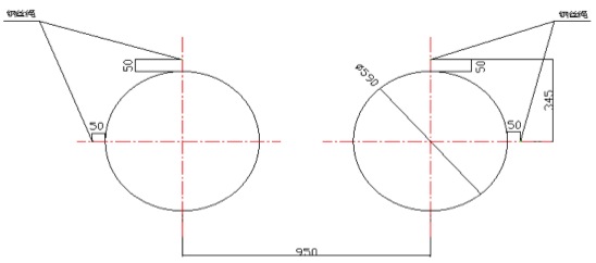 第二次調(diào)整:①卸下全部的夾軸器,按照以上粗調(diào)的步驟來精調(diào)離心機(jī)的水平精度;②調(diào)整要求:水平方向,調(diào)整主、從動輪軸承座旁的調(diào)節(jié)螺釘使主動軸與副軸中心線在同一水平面上間距為950mm,兩端的寬度差(平行度)≦±0.5mm;垂直方向各輪的水平度誤差±1mm,前后輪略高0.5mm;調(diào)整各組跑輪使長度方向中心距為2000mm±1mm,總托輪距累積誤差≦±2mm。③帶擋邊主、副輪與模具接觸面要對應(yīng)對齊,調(diào)整后要鎖緊,防止工作時移位(圖示一);④底部的墊鐵、斜鐵要打緊,緊定好螺母,重新裝好夾軸器,進(jìn)行第二次灌漿。