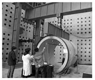 一、頂管概況及檢測(cè)項(xiàng)目 1. 概況 試驗(yàn)的水泥管為Ⅲ級(jí)管,產(chǎn)品型號(hào):DRCP2200*2500mm,內(nèi)徑2.2m,管壁厚220mm,長(zhǎng)度2.5m。配有雙層鋼筋骨架,縱筋為Φ10預(yù)應(yīng)力混凝土用鋼棒,fy=1420N/mm2,內(nèi)外兩側(cè)各24根,環(huán)向筋為Φ8HPB235級(jí)螺旋箍筋,fy=505N/mm2,ft=345N/mm2,鋼筋配置見(jiàn)圖1,排水管采用立式芯模水泥制管機(jī)振搗成型,制作工藝見(jiàn)圖2。混凝土采用蒸汽養(yǎng)護(hù),試驗(yàn)時(shí)齡期為50d。 ![]() 圖1 排水管鋼筋籠 圖2 制作工藝 2. 檢測(cè)項(xiàng)目 2.1 外觀質(zhì)量及試件幾何尺寸 通過(guò)檢測(cè),管內(nèi)、外表面比較平整,無(wú)蜂窩、粘皮、露筋、麻面、塌落、空鼓、裂縫等現(xiàn)象。試件的內(nèi)徑、厚度及長(zhǎng)度的實(shí)測(cè)結(jié)果與規(guī)范值的偏差如表1所示。